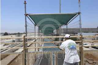 TIJUANA, BAJA CALIFORNIA, 30JUNIO2016.- Infraestructura que se monta por parte del gobierno mexicano en el bordo de la canalización del Río Tijuana con la cual se pretende dar acceso al nuevo edificio construido por el gobierno estadounidense, Ped West, que contará con 14 carriles peatonales para los 25 mil viajeros que cruzan caminando diariamente de Tijuana a San Diego. FOTO: CHRISTIAN SERNA /CUARTOSCURO.COM