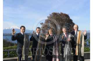 PUERTO VARAS, CHILE, 01JULIO2016.- En el marco de la XI Cumbre de la Alianza del Pacífico, el Presidente Enrique Peña Nieto y sus homólogos de Chile, Colombia y Perú, Michelle Bachelet, Juan Manuel Santos, y Ollanta Humala, respectivamente, así como el Presidente electo de Perú, Pedro Pablo Kuczynski, posaron para la Fotografía Oficial. FOTO: PRESIDENCIA / CUARTOSCURO.COM