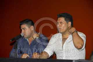 CiUDAD DE MÉXICO, 02JULIO2016.- Sergio Lizárraga, director de la Banda "MS", y el vocalista Oswaldo Silvas ofrecieron una conferencia a los medios de comunicación para informar del accidente que hoy por la madrugada sufrió el vocalista Alan Ramirez, después del concierto que ofrecieron ayer en el Auditorio Nacional. Los hechos se suscitaron en la zona de Polanco frente al recinto. FOTO: ANTONIO CRUZ /CUARTOSCURO.COM
