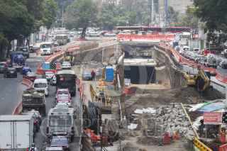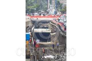 CIUDAD DE MÉXICO, 04JULIO2016.- Continúan los trabajos del deprimido Mixcoac, el cual espera reducir el tiempo para los automovilistas que cruzan Avenida Insurgentes y Río Churubusco. Intenso trafico se observa en la zona por los trabajos. Vecinos de las colonias aledañas interpusieron un amparo para que se detener los trabajos. FOTO: MOISÉS PABLO /CUARTOSCURO.COM