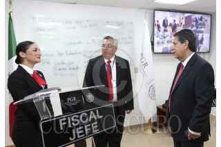 COAHUILA, COAHUILA, 04JULIO2016.- El delegado de la Procuraduría General de la República (PGR) en el estado de Coahuila, Fernando Adrián Olivas Jurado, y Arely Gómez, Procuradora General de la República, durante la presentación sobre los avances del Sistema de Justicia Penal Acusatorio en esa entidad. El funcionario coahuilense precisó que se ha venido implementado de manera exitosa, con base al conocimiento, oportunidad y sensibilidad de las nuevas fórmulas de atención, investigación y reducción de los casos. Con la entrada en vigor del Sistema Procesal Acusatorio se han iniciado 586 carpetas de investigación, principalmente por los delitos Contra la Salud y Violación a la Ley Federal se Armas de Fuego y Explosivos. FOTO: PGR /CUARTOSCURO.COM