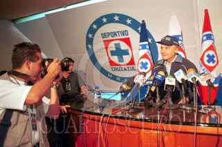 Guillermo Álvarez, presidente del Club Cruz Azul anunció este medio día que los jugadores Juan Francisco Palencia, Oscar Pérez, Gilberto Jiménez. Miguel Zepeda, Flavio Davino, Sergio Almaguer y Melvin Brown, han llegado a un acuerdo con la directiva y se prersentarán mañana sábado a entrenar en La Noria, no así los cuatro jugadores extranjeros con quienes continuan las platicas para negociar sus contratos de trabajo. FOTO: Pedro Mera/CUARTOSCURO.COM