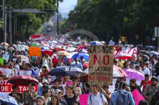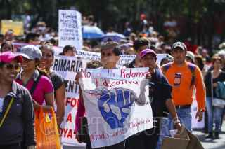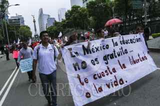 CIUDAD DE MÉXICO, 05JULIO2016.- Padres de familia y maestros de la sección 9 de la Coordinadora Nacional de Trabajadores de la Educación, marcharon en contra de la Reforma Educativa del Ángel de la Independencia al Hemiciclo Juárez, ya que un bloqueo de granaderos de la Ciudad de México bloqueo el transito hacia el zócalo capitalino. FOTO: ADOLFO VLADIMIR /CUARTOSCURO.COM