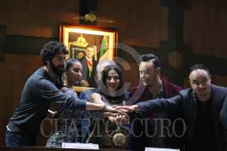 CIUDAD DE MÉXICO, 05JULIO2016.- Benny Ibarra, Paty Cantú, María León vocalista de Playa Limbo e integrantes de Rio Roma y Alejandro Garza, Díaz, durante la presentación del boleto de lotería conmemorativo al 25 aniversario de CIE. FOTO: SAÚL LÓPEZ /CUARTOSCURO.COM