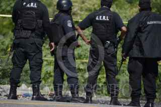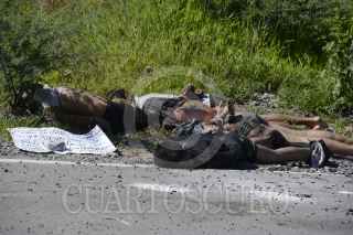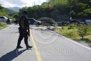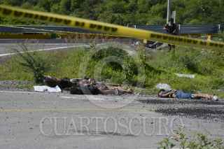 CHILPANCINGO, GUERRERO, 06JULIO2016.- Cinco jóvenes fueron encontrados ejecutados sobre la carretera federal Chilpancingo-Iguala, en el punto conocido como Casa Verde en el kilómetro 190, a un lado de los cuerpos había un mensaje del crimen organizado, policías federales resguardaron el lugar. FOTO: JOSE I. HERNÁNDEZ /CUARTOSCURO.COM