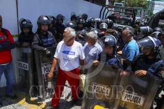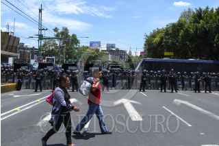CIUDAD DE MÉXICO, 06JULIO2016.- Maestros de la Coordinadora Nacional de Trabajadores de la Educación sección 9, marcharon desde cuatros puntos de la ciudad con destino al zócalo, pero grandaderos bloquearon avenidas para impedirlo. Al final los maestros llegaron frente al hemiciclo a Juárez en donde terminaron con un mitin. FOTO: ADOLFO VLADIMIR /CUARTOSCURO.COM