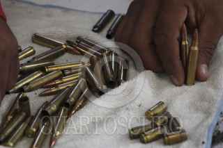NOCHIXTLÁN, OAXACA, 07JULIO2016.- Maestros de la sección 22 de la CNTE, pobladores y familiares de los heridos y fallecidos en el enfrentamiento entre policías y manifestantes el pasado 19 de junio en Nochixtlan, realizaron una conferencia de prensa previa a la llegada del subsecretario de Derechos Humanos de la Secretaría de Gobernación, Roberto Campa, ahí presentaron evidencia como casquillos que fueron recuperados por algunas personas. FOTO: ADRIANA ALVAREZ /CUARTOSCURTO.COM