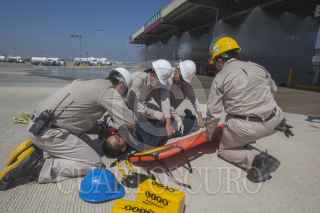SALINAS VICTORIA, NUEVO LEÓN, 07JULIO2016. Petróleos Mexicanos realizó un simulacro contraincendio en la Terminal de Gas Licuado Monterrey. A partir del 8 de julio los simulacros se efectuarán en diversas instalaciones como refinerías, terminales de abastecimiento, complejos procesadores de gas, activos de producción y edificios administrativos, ubicados en los estados de Veracruz, Campeche, Tabasco, Tamaulipas, Guanajuato, Jalisco, Hidalgo, con motivo del Día Nacional de la Preparación y Respuesta a Emergencias Químicas. FOTO: GABRIELA PÉREZ MONTIEL /CUARTOSCURO.COM