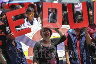 CIUDAD DE MÉXICO, 07JULIO2016.- Jóvenes aglutinados en el Movimiento de Aspirantes Excluidos de la Educación Superior (MAES), marcharon del Hemiciclo a Juárez al edificio de la Secretaria de Educación Pública en la plaza de Santo Domingo. Los manifestantes exigieron mayores espacios en las universidades públicas, además de apoyar la lucha magisterial en contra de la Reforma Educativa. FOTO: ADOLFO VLADIMIR /CUARTOSCURO.COM
