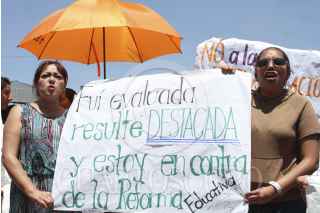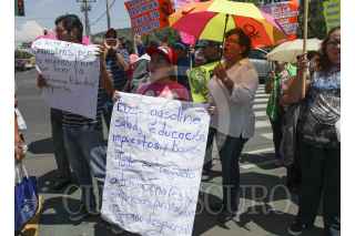 CIUDAD DE MÉXICO, 07JULIO2016.- Padres de familia protestaron en contra de la Reforma Educativa y en favor del movimiento magisterial sobre la Av. Eduardo Molina al término del evento del jefe de gobierno capitalino, Miguel Ángel Mancera. Sin embargo, el político abandonó el lugar antes de toparse con los padres de familia. FOTO: MARÍA JOSÉ MARTÍNEZ /CUARTOSCURO.COM
