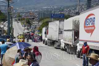 CHILPANCINGO, GUERRERO, 07JULIO2016.- Profesores de la Coordinadora Estatal de Trabajadores de la Educación en Guerrero (Ceteg) instalaron un retén en el carril Norte–Sur de la Autopista del Sol, donde solicitaron cooperación voluntaria a los automovilista y retuvieron camiones de empresas transnacionales. FOTO: JOSÉ I. HERNÁNDEZ /CUARTOSCURO.COM