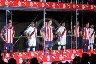 ZAPOPAN, JALISCO, 07JULIO2016.- Esta noche en las instalaciones del estadio Chivas, el equipo del de Guadalajara llevo a cabo la presentación de su nuevo uniforme, mismo que utilizara para los torneos Apertura 2016, Clausura 2017 de la Liga MX. FOTO : FERNANDO CARRANZA GARCIA / CUARTOSCURO.COM