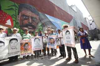CIUDAD DE MÉXICO, 08JULIO2016.- Padres de los 43 normalistas desaparecidos acompañados del vocero Vidulfo Rosales, ofrecieron una conferencia de prensa al termino de la reunión con Roberto Campa, subsecretario de Derechos Humanos de la Secretaría de Gobernación, en el centro Agustín Prodh. FOTO: GABINO ACEVEDO /CUARTOSCURO.COM