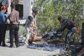 CIUDAD JUAREZ, CHIHUAHUA, 08JULIO2016.- Peritos de la procuraduría del estado, realizan las investigaciones y el levenatamiento de un cuerpo de un hombre que fue localizado sin vida el cruce de las calles Pino Suárez a la altura de la Lázaro Cárdenas FOTO: NACHO RUÍZ /CUARTOSCURO.COM