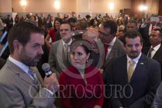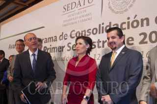CIUDAD DE MÉXICO, 12JULIO2016.- Juan Carlos Lastiri Quirós, subsecretario de Desarrollo Urbano y Vivienda; Rosario Robles Berlanga, secretaria de Desarrollo Agrario, Territorial y Urbano (Sedatu), y Carlos Medina Rodríguez, presidente de Canadevi, durante la presentación "Avances del programa de consolidación de reservas urbanas primer semestre de 2016". FOTO: MOISÉS PABLO /CUARTOSCURO.COM