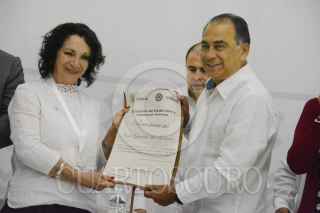 CHILPANCINGO, GUERRERO, 12JULIO2016.- Héctor Astudillo Flores, gobernador de Guerrero, entregó la medalla y reconocimiento “Licenciado Alberto Vázquez Mercado” a Irma Graciela Lee González por su trayectoria y méritos profesionales, actualmente es juez de Primera Instancia en el Tribunal Superior de Justicia del Estado de Guerrero, además de catedrática en Derecho Civil, Procesal, Familiar y Sucesiones en la Universidad Americana de Acapulco. En la ceremonia que se llevó acabo en la Sala de la República de Casa Guerrero residencia oficial del Ejecutivo del Estado. FOTO: JOSÉ I. HERNÁNDEZ /CUARTOSCURO.COM