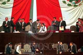 El secretario de Gobernación, Santiago Creel, rechazó categóricamente que haya recibido financiamiento de la Asociación "Amigos de Fox" para su campaña a la jefatura de Gobierno del DF durante la elección del año 2000. Después de participar en la clausura del Primer Parlamento de las Niñas y los Niños de México. FOTO: Oswaldo Ramírez/CUARTOSCURO.COM