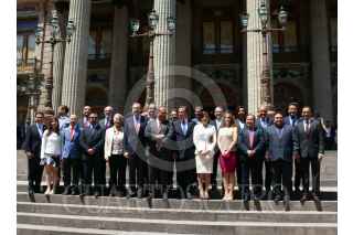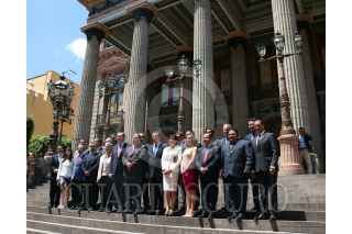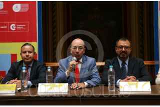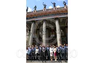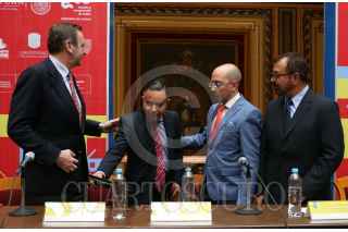 GUANAJUATO, GUANAJUATO, 13JULIO2016.- Jorge Volpi, director del FIC, Jual Alcocer, Secretario de Cultura de Guanajuato, Edgar Castro, edil de Guanajuato y Luis Fernández Cid, embajador de España en conferencia de prensa al término de la presentación del XLIV edición del Festival Internacional Cervantino quien tiene como invitados especiales a España y al estado de Jalisco. FOTO: SAÚL LÓPEZ /CUARTOSCURO.COM