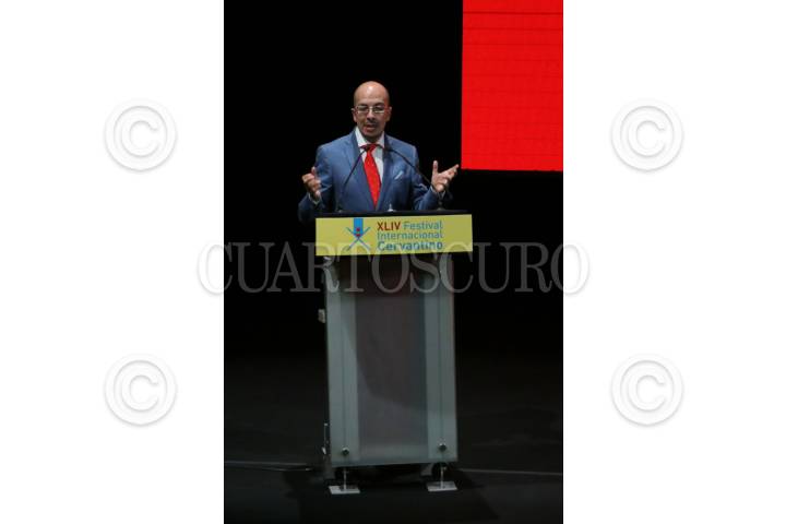 GUANAJUATO, GUANAJUATO, 13JULIO2016.- Jorge Volpi, director del FIC, Jual Alcocer, Secretario de Cultura de Guanajuato, Edgar Castro, edil de Guanajuato y Luis Fernández Cid, embajador de España en conferencia de prensa al término de la presentación del XLIV edición del Festival Internacional Cervantino quien tiene como invitados especiales a España y al estado de Jalisco. FOTO: SAÚL LÓPEZ /CUARTOSCURO.COM