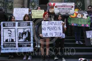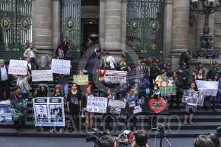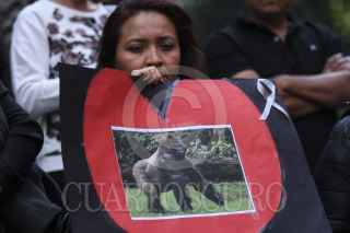 CIUDAD DE MÉXICO, 13JULIO2016.- Personas se manifestaron en frente a la Asamblea del Distrito Federal para mostrar su repudio por la resiente muerte del gorila Bantú, cuando fue anestesiado para su traslado al zoológico de Guadalajara. Los manifestantes exigieron el traslado de los animales del zoológico de chapultepec a reservas y responsabilizaron a Tanya Muller, secretaria de Medio Ambiente, de las últimas muertes de animales en la ciudad. FOTO: ADOLFO VLADIMIR /CUARTOSCURO.COM
