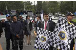 CIUDAD DE MÉXICO, 14JULIO2016.- Hiram Almeida, secretario de Seguridad Pública de la CDMX; encabezó el banderazo de salida del operativo vacacional contra robo a casa habitación en la colonia Lomas de Chapultepec. Decenas de camionetas partieron de este punto para patrullar las calles y combatir este delito que aumenta en estas fechas donde capitalinos salen por las vacaciones de verano. FOTO: MOISÉS PABLO /CUARTOSCURO.COM