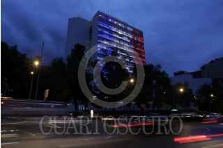 CIUDAD DE MÉXICO, 15JULIO2016.- Ayer por la noche, la sede del Senado de la República fue iluminada con los colores de la bandera de Francia, como símbolo de solidaridad con los hechos ocurridos en Niza. FOTO: CUARTOSCURO.COM
