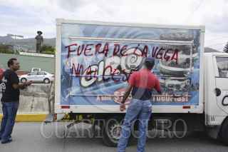 CHILPANCINGO, GUERRERO, 15JULIO2016.- Profesores de la Coordinadora Estatal de Trabajadores de la Educación de Guerrero encabezados por Antonia Morales Vélez, bloquearon la lateral de la avenida Río Huacapa, mejor conocida como Paseo Alejandro Cervantes Delgado, los manifestantes pintarrajearon automotores de empresas transnacionales y pidieron cooperación económica a los automovilistas. FOTO: JOSÉ I. HERNÁNDEZ / CUARTOSCURO.COM
