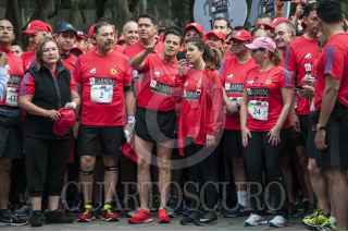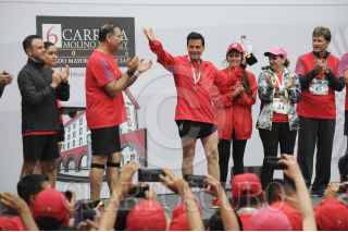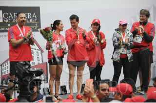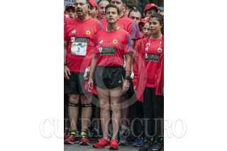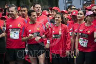 CIUDAD DE MÉXICO, 16JULIO2016.- Enrique Peña Nieto, presidente de México, su hija Paulina Peña Pretelini; Roberto Francisco Miranda Moreno, jefe del estado mayor presidencial; Xóchitl Gálvez, delegada en Miguel Hidalgo; Claudia Ruiz Massieu, secretaria de Relaciones Exteriores: Andrés Massieu Fernández, coordinador general de Política y Gobierno de la Presidencia de la República; Francisco Guzmán Ortiz, jefe de la oficina de la Presidencia de la República, entre otros, encabezaron la sexta edición de la carrera Molino del Rey, organizada por el estado mayor en el bosque de Chapultepec y los Pinos. Al finalizar el Jefe de Ejecutivo entregó los premios a los ganadores. FOTO: DIEGO SIMÓN SÁNCHEZ /CUARTOSCURO.COM
