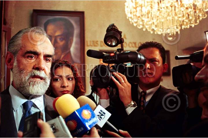 Emilio Gamboa Patrón, discutiendo con un compañero de bancada, las modificaciones al código penal que se presentaron durante la sesión en el senado de la República. FOTO: Victoria Valtierra/CUARTOSCURO.CO