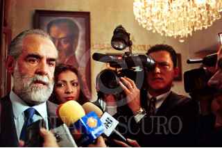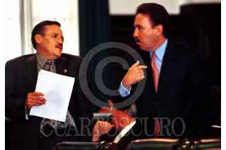 Emilio Gamboa Patrón, discutiendo con un compañero de bancada, las modificaciones al código penal que se presentaron durante la sesión en el senado de la República. FOTO: Victoria Valtierra/CUARTOSCURO.CO