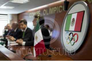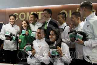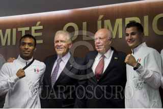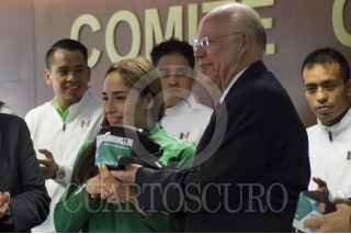 CIUDAD DE MÉXICO, 18JULIO2016.- Pablo Kuri Morales, subsecretario de Prevención y Promoción de la Salud, se retrato con los atletas seleccionados para competir en los próximos Juegos Olímpicos de Río 2016 al termino de la conferencia en materia de salud realizada en las inmediaciones del Comité Olímpico Mexicano. FOTO: GALO CAÑAS /CUARTOSCURO.COM