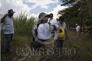 CORDOBA, VERACRUZ, 19JULIO2016.- Tras indicios en la zona sobre presuntos restos enterrados en el Rancho San Matías, ubicado en el ejido de Agustín Millan, la Brigada Nacional de Búsqueda inició su primer jornada. La Policía Federal acordonó la zona. En el segundo punto explorado del día, ubicado en el lindero El Porvenir, se encontraron restos de ropa masculina y de niños presentando un estado de deterioro avanzado debido a las condiciones climatológicas. Los activistas recibieron la visita de observadores de la oficina del Alto Comisionado de la ONU. FOTO: KARLO REYES /CUARTOSCURO.COM