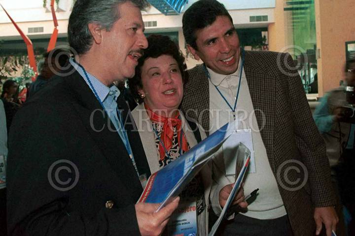 Ricardo García Cervantes y Antonio Lozano Gracia, bromean a su llegada a la reunion del Consejo Político del PAN. FOTO: David García/CUARTOSCURO.COM