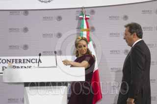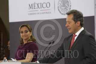 CIUDAD DE MÉXICO, 21JULIO2016.- Claudia Ruiz Massieu Salinas, secretaria de Turismo, y Eduardo Sánchez Hernández, vocero y director de comunicación social de la Presidencia de la República, dieron a conocer los temas a tratar del encuentro que sostendrá el Presidente Enrique Peña Nieto y el Presidente Barack Obama, el viernes 22 de julio en Washington, D.C. FOTO: MOISÉS PABLO /CUARTOSCURO.COM