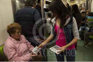 CIUDAD DE MÉXICO, 21JULIO2016.- Jóvenes integrantes del Movimiento de Aspirantes Excluidos de Educación Superior (MAES) realizaron volanteo en diversas estaciones del Sistema de Transporte Colectivo Metro, para informar acerca de dicho movimiento. Asimismo, para invitar a los usuarios a sumarse a la marcha programada para el próximo 25 de julio, que partirá del Monumento a la Revolución hacia Secretaría de Educación Pública (SEP). FOTO: GALO CAÑAS /CUARTOSCURO.COM