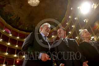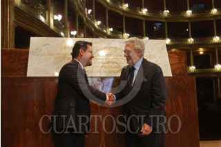 GUADALAJARA, JALISCO, 20JULIO2016.- El cantante y compositor de origen español, Plácido Domingo, el Gobernador del Estado, Jorge Aristóteles Sandoval Díaz y la Secretaria de Cultura del estado, Miriam Baches Plagnol, encabezaron la develación de una placa con motivo del 150 aniversario del Teatro Degollado, posteriormente el tenor brindo una rueda de prensa para dar a conocer los detalles de “Operalia The World Opera Competition” concurso internacional de canto fundado por el maestro Plácido en 1993, que reúne a 40 participantes de 16 países, mismo que organiza la Secretaria de Cultura de la entidad. FOTO : FERNANDO CARRANZA GARCIA / CUARTOSCURO.COM
