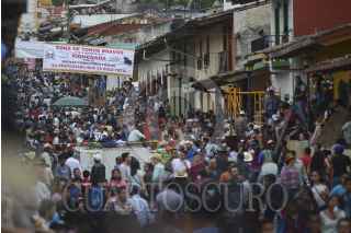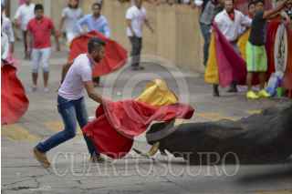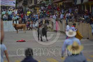 XICO, VERACRUZ, 22JULIO2016.- Con 20 toros de lidia repartidos en 5 secciones a lo largo de la calle principal de Xico y sin la derrama de sangre, se llevó a cabo esta tarde la tradicional "Xiqueñada", donde se reportaron 5 lesionados con algunos raspones, mismos que fueron tendidos al momento. Autoridades municipales reportaron la participación de alrededor de 70 000 personas. FOTO: ALBERTO ROA /CUARTOSCURO.COM