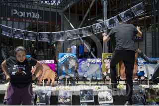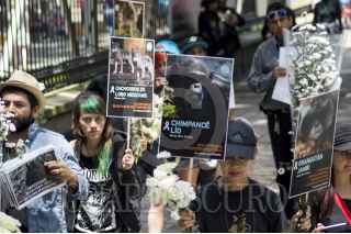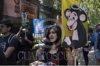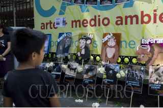 CIUDAD DE MÉXICO, 24JULIO2016.- Integrantes del proyecto Gran Simio realizaron una protesta en las inmediaciones del zoológico de Chapultepec en donde colocaron una manta y algunos letreros con las imágenes de animales que han muerto dentro del reciento en años pasados. Esto tras la reciente muerte del gorila Bantú por una supuesta negligencia médica. FOTO: GALO CAÑAS /CUARTOSCURO.COM