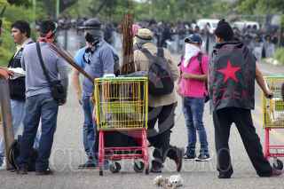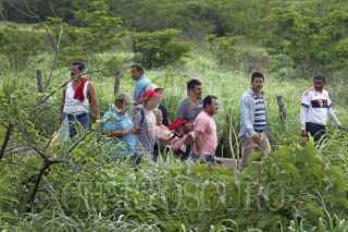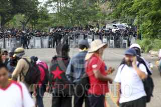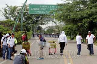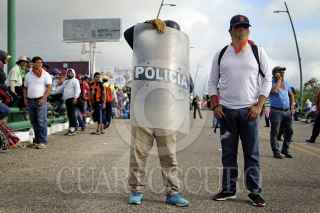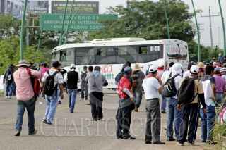 TUXTLA GUTIÉRREZ, CHIAPAS, 25JULIO2016: Maestros de la CNTE ayudan a una persona de la tercera edad a avanzar hacia su domicilio, durante el bloqueo que realizan en la entrada y salida al Aeropuerto Internacional Ángel Albino Corzo en Chiapas. Policías resguardan las instalaciones. No hay hora determinada para levantar el bloqueo. FOTO: JESÚS GARCÍA /CUARTOSCURO.COM