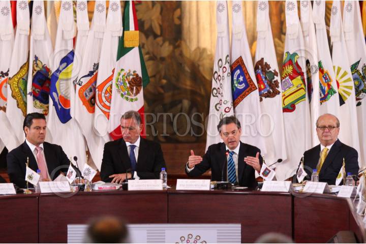 CIUDAD DE MÉXICO, 26JULIO2016.- Aurelio Nuño, secretario de Educación Pública, Gabino Cué Montiagudo, gobernador del estado de Oaxaca y presidente de la Comisión Nacional de Gobernadores y Graco Ramírez, gobernador del estado de Morelos y presidente de la Comisión de Educación de la CONAGO, presidieron la "Mesa de trabajo SEP-Conago" para la implementación del Plan Educativo propuesto por la SEP. En la image, Javier Duarte, gobernador del estado dde Veracruz. FOTO: ADOLFO VLADIMIR / CUARTOSCURO.COM