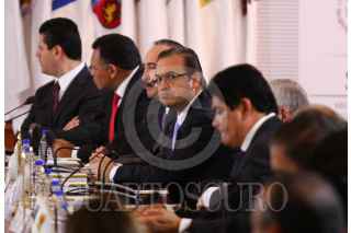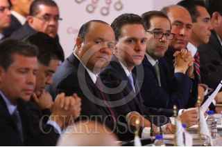 CIUDAD DE MÉXICO, 26JULIO2016.- Aurelio Nuño, secretario de Educación Pública, Gabino Cué Montiagudo, gobernador del estado de Oaxaca y presidente de la Comisión Nacional de Gobernadores y Graco Ramírez, gobernador del estado de Morelos y presidente de la Comisión de Educación de la CONAGO, presidieron la "Mesa de trabajo SEP-Conago" para la implementación del Plan Educativo propuesto por la SEP. En la image, Javier Duarte, gobernador del estado dde Veracruz. FOTO: ADOLFO VLADIMIR / CUARTOSCURO.COM