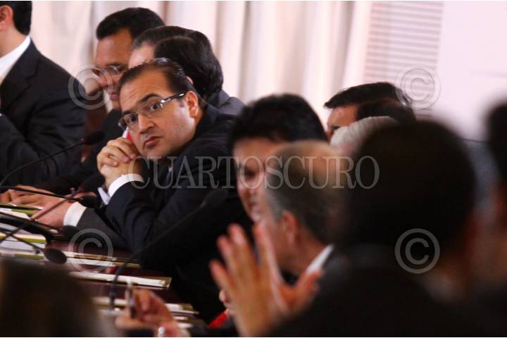 CIUDAD DE MÉXICO, 26JULIO2016.- Aurelio Nuño, secretario de Educación Pública, Gabino Cué Montiagudo, gobernador del estado de Oaxaca y presidente de la Comisión Nacional de Gobernadores y Graco Ramírez, gobernador del estado de Morelos y presidente de la Comisión de Educación de la CONAGO, presidieron la "Mesa de trabajo SEP-Conago" para la implementación del Plan Educativo propuesto por la SEP. En la image, Javier Duarte, gobernador del estado dde Veracruz. FOTO: ADOLFO VLADIMIR / CUARTOSCURO.COM