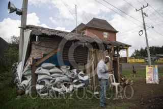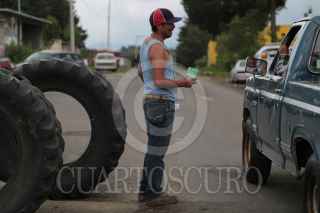NAHUATZEN, MICHOACÁN, 26JULIO2016.- Pobladores y miembros del Consejo Comunal, continuan esperando que se cumplan las promesas que hizó el gobernador, Silvano Aureoles Conejo, después de que el conflicto llegó a su punto más álgido el pasado mes de mayo con quema de vehículos de empresas privadas. Denuncian que los secretarios de estado dejaron de responder las llamadas de teléfono y que las acciones se desarrollan de una manera muy lenta. Amenazan con emprender acciones radicales si el gobierno estatal continua con la misma política. En la imagen un miembro de la Policía Comunitaria vigila y pide cooperación en una de las entradas a la cabecera municipal. FOTO: ALAN ORTEGA /CUARTOSCRUO.COM
