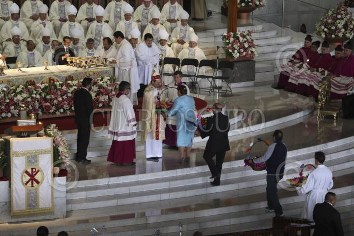 CIUDAD DE MÉXICO, 27JULIO2016.- Norberto Rivera Carrera, Arzobispo Primado de México, festejo sus bodas de oro sacerdotales con una misa realizada en la Basílica de Guadalupe. Durante la celebración religiosa lo acompañaron todos los obispo y cardenales de México así como empresarios y políticos. En la imagen Carlos Slim Helú, y Diego Fernandez de Ceballos. FOTO: SAÚL LÓPEZ /CUARTOSCURO.COM