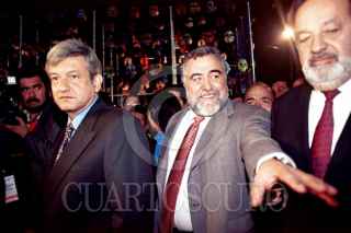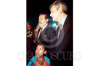 Andrés Manuel Lopéz Obrador, jefe de Gobierno del DF y el empresario Carlos Slim miembro del patronato para el Centro Historico son acompañados por un niño de la calle. FOTO: Eunice Adorno/CUARTOSCURO.COM
