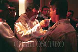 Decenas de reclusos recibieron la comunicón de manos del Cardenal Norberto Rivera, en el penal preventivo oriente de esta ciudad. FOTO: Victoria Valtierra/CUARTOSCURO.COM