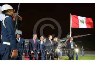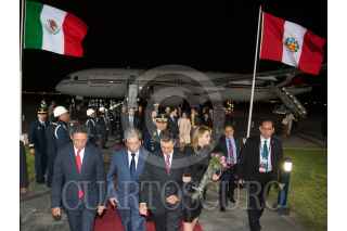 LIMA, PERU, 27JULIO2016.- Acompañado por su esposa, la señora Angélica Rivera de Peña, el Presidente Enrique Peña Nieto arribó esta noche al Aeropuerto Internacional “Jorge Chávez”-Base Aérea del Callao, con el fin de acudir mañana a la ceremonia de Transmisión del Mando Supremo del nuevo Presidente de la República del Perú, Pedro Pablo Kuczynski. FOTO: PRESIDENCIA /CUARTOSCURO.COM