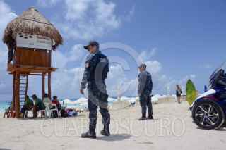 CANCÚN, QUINTANA ROO, 28JULIO2016.- Turistas nacionales y extranjeros disfrutan de un día de sol y playa, mientras elementos de la gendarmería realizan recorridos para mantener la seguridad de los visitantes. FOTO: ELIZABETH RUIZ /CUARTOSCURO.COM