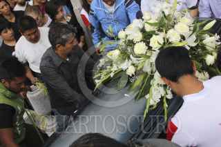 ECATEPEC, ESTADO DE MÉXICO, 28JULIO2016.- Los restos del alpinista José Miguel Mendoza Paulin, quien falleció por una avalancha el pasado 19 de julio en la montaña Huascarán de Perú, fueron sepultados en el panteón municipal de San Cristóbal en este municipio, con porras y aplausos familiares y amigos le dieron el ultimo adiós. FOTO: DIEGO REYES /CUARTOSCURO.COM