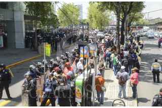 CIUDAD DE MÉXICO, 29JULIO2016.- Maestros de la Coordinadora Nacional de los Trabajadores de la Educación (CNTE), intentaron bloquear el centro comercial ubicado en Buenavista en el marco de su lucha contra la reforma educativa, sin embargo, policias de la SSPCM no les permitieron el paso. FOTO: ARMANDO MONROY /CUARTOSCURO.COM